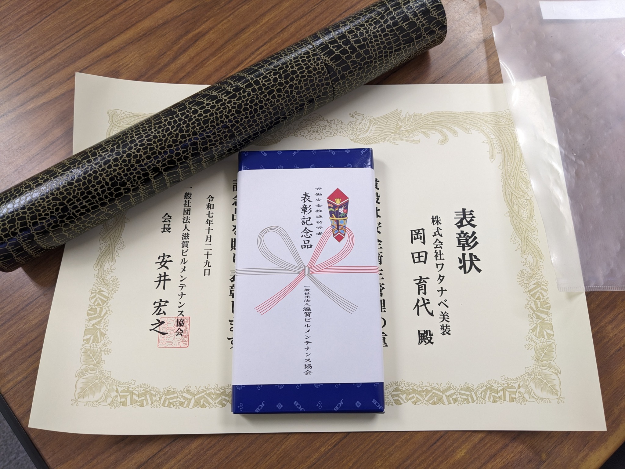 上司が推薦してくださっていたそうで、今回は私が労働安全推進功労者を頂戴いたしました。身の引き締まる思いでいます。