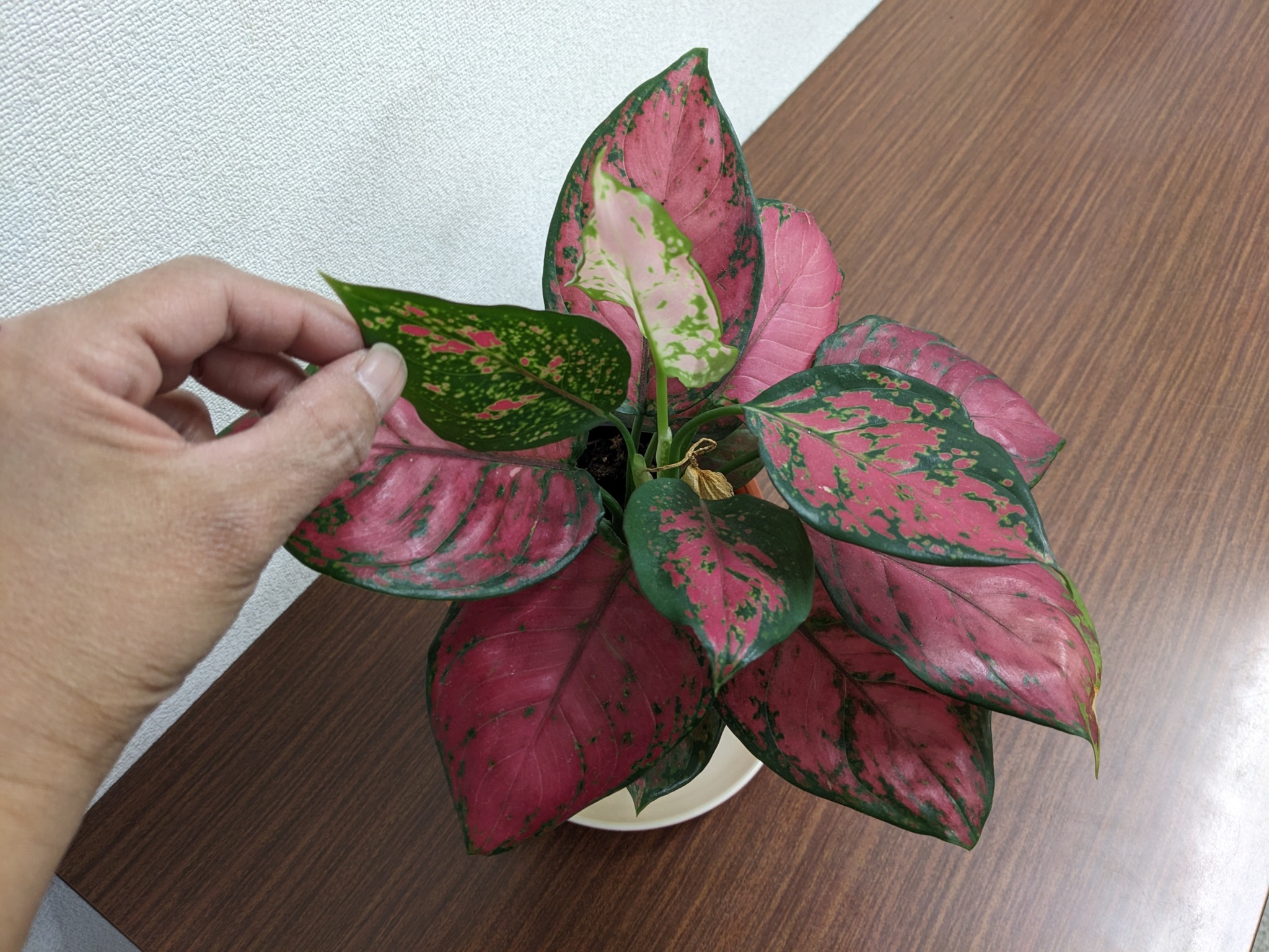 あれからみなさんこんにちは。岡田育代です。あと2日で11月、今年も残すところ2ヶ月となってしまいました。時の経つのはなんて早いのでしょう。3ヶ月前頃にうちのスタッフさんが、詰所に彩りをと持ってきてくれたアグラオネマバレンタイン。今も綺麗な葉をつけていま