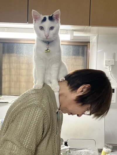 今は身体も大分大きくなり、体重もしっかりあり、元気にすくすく育っています。母の肩に乗って、高い所に飛び移ることを覚えました。やんちゃで、甘えん坊な性格です。やはり動物を飼っていると、毎日家に帰るのがとても楽しみです。
