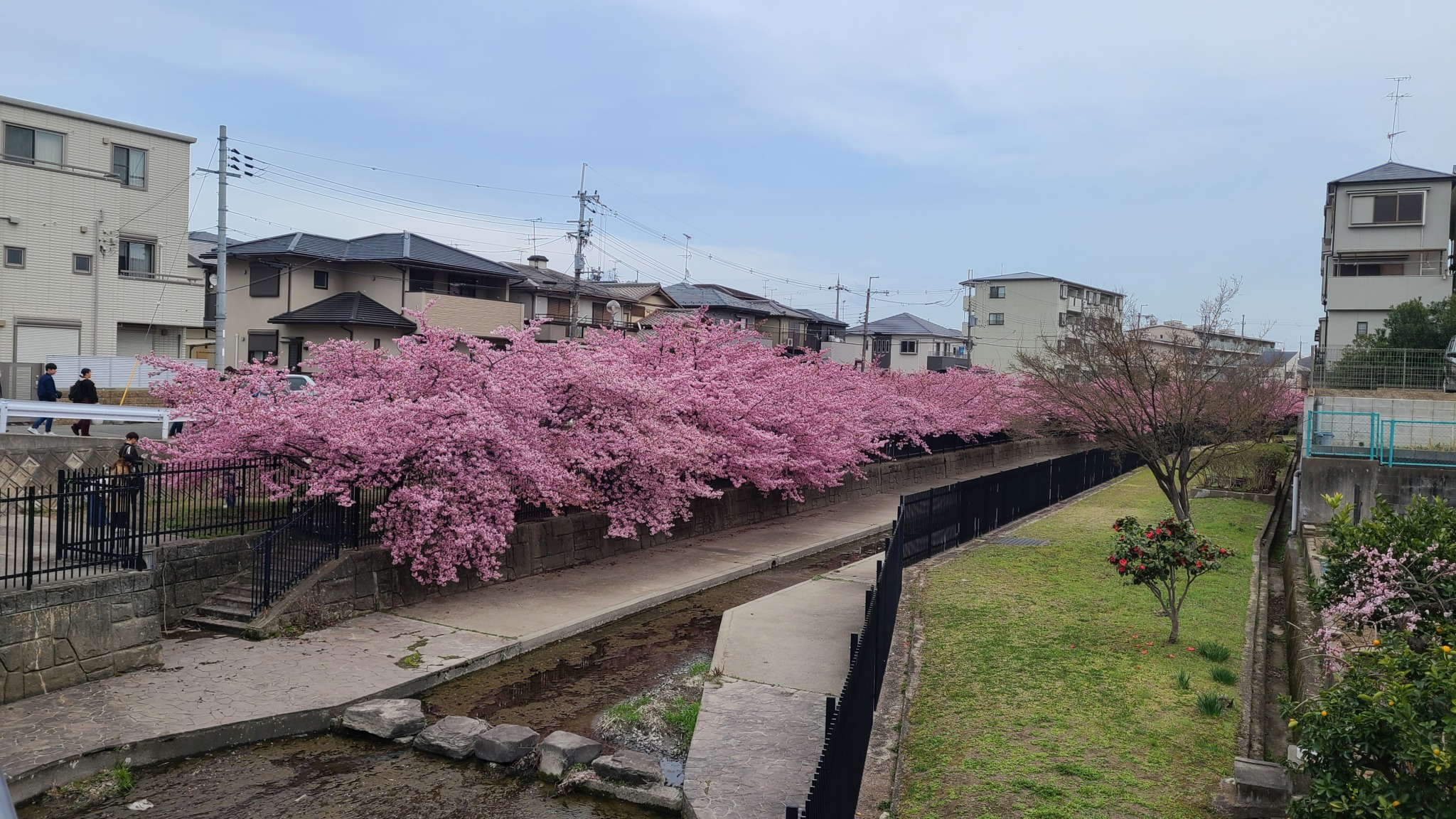 小さな川沿いに桜並木がずっと続いていて見ごたえがありました。