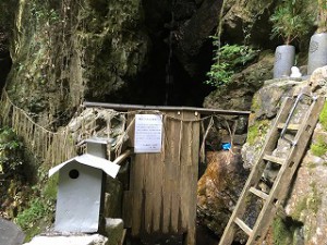 でほら貝を吹いていました。これが修行が出来る滝です。先日下見に来たときは、